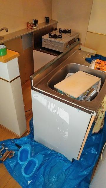 台所を一旦引き出し、壁の中にある配管を確認するとピンホールして水が霧状に噴き出していました。
