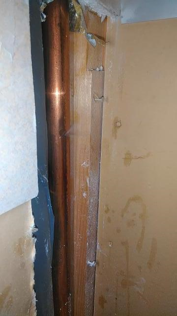 現場にて調査をすると、台所裏からほんのり水が漏れてきている音が聞こえました。