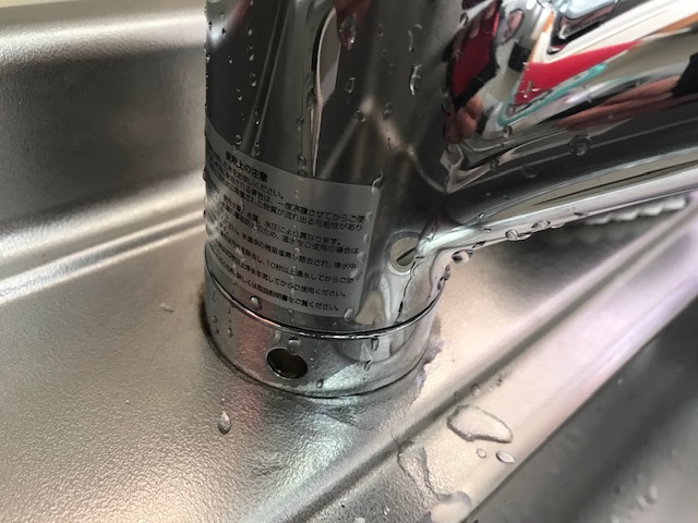 蛇口を使用していない時でもレバーハンドル下から漏水している状態で、使用するとさらに水漏れしてくる状態でした。