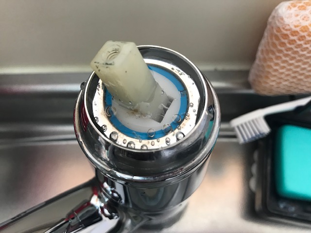 原因は蛇口内部にあるバルブの劣化で、レバーハンドルを動かしただけでも手ごたえがほぼないくらい劣化していました。