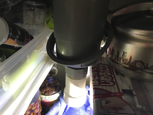 不幸中の幸いといったらなんですが、台所の排水がすぐ下で曲がっているので、近くにあるようです。