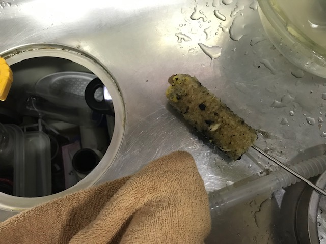 台所を使用していたところ、とうもろこしの芯を落としてしまい水が流れなくなってしまったとのことです。