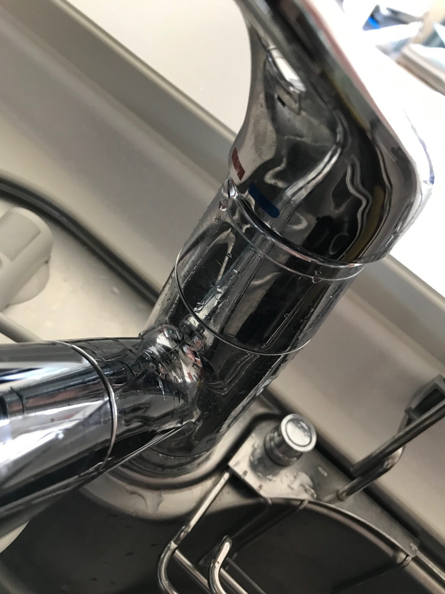 水漏れ箇所はレバーハンドルの下から漏れてきており、使用する度に本体を伝って滴り落ちてきていました。