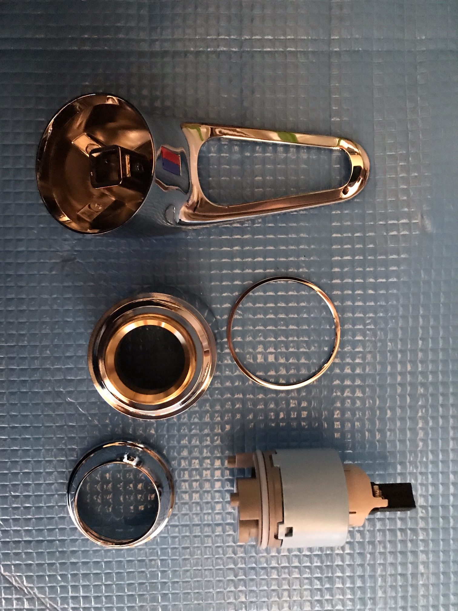 メーカー様より部品を供給されていましたので、レバーハンドルとバルブセットを交換して難なく改善しました。