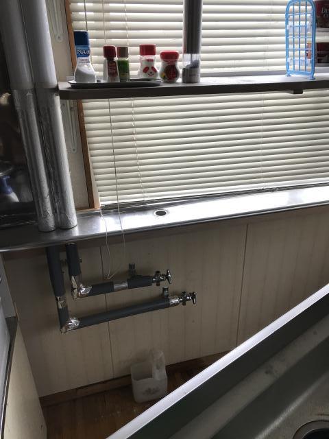 台所の収納部からは配管の繋ぎ目を見ることができない造りでしたので、いったん台所を引き出して作業を行いました。
