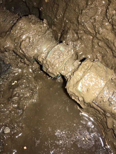 細かく調査して掘っていった結果、管との繋ぎ目で漏れているのを発見し、原因の継手を交換して症状は改善しました。