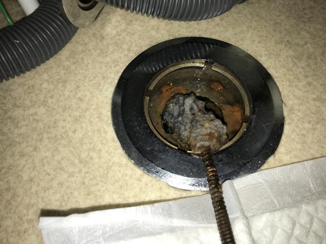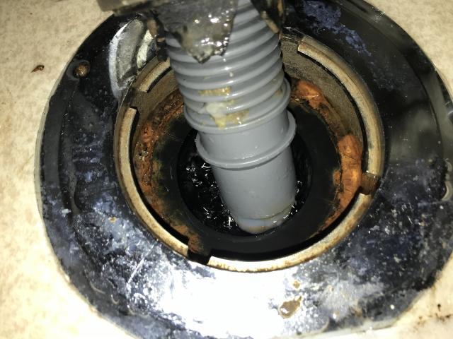 何年もこちらにお住まいの入居者様で、最近になって排水から水漏れしていることに気づいたそうです。