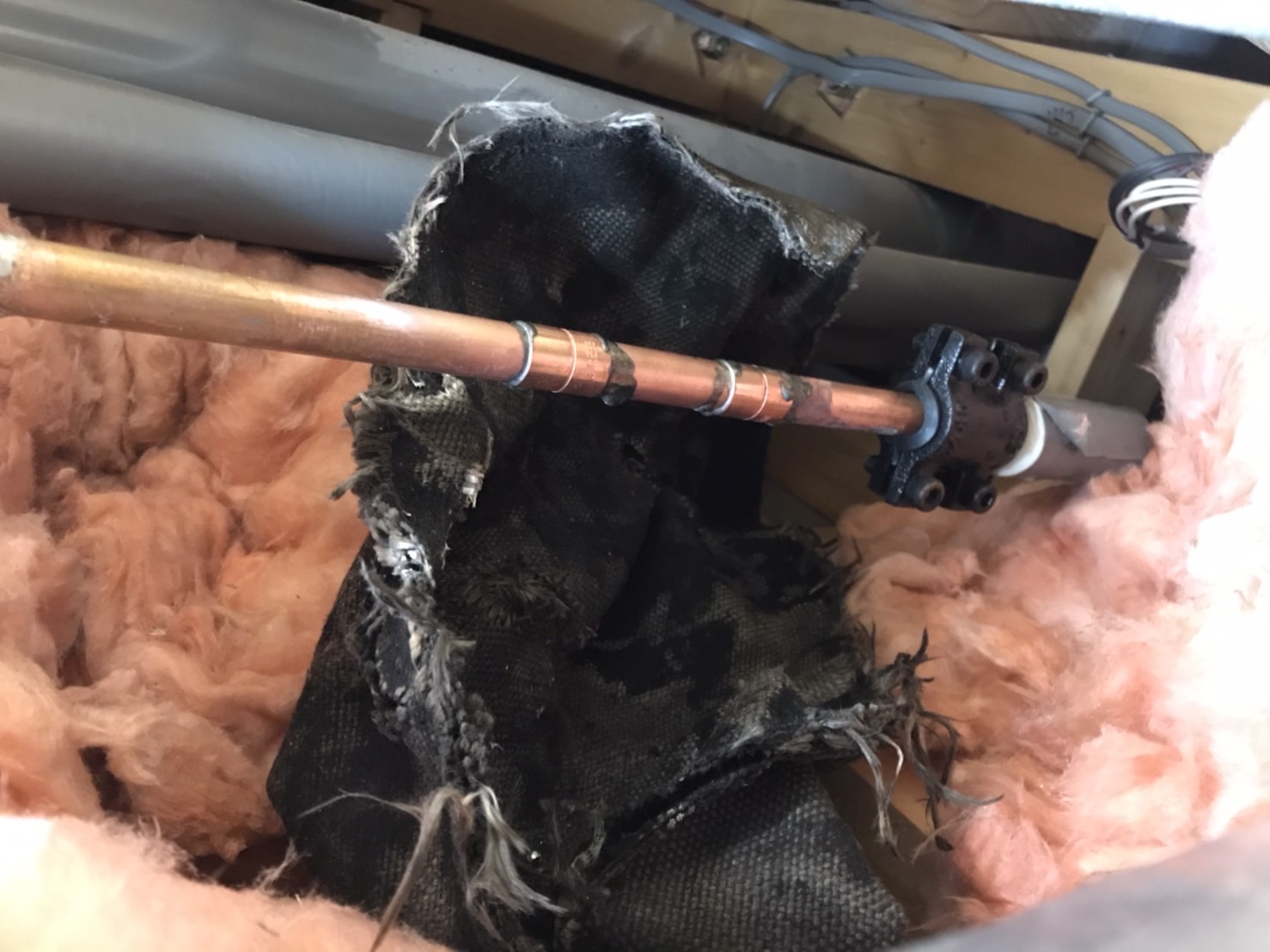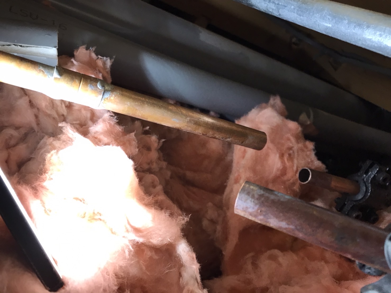 天井裏を見ると銅管の一部からピンホールしており、こちらを新しい銅管に交換して改善しました。