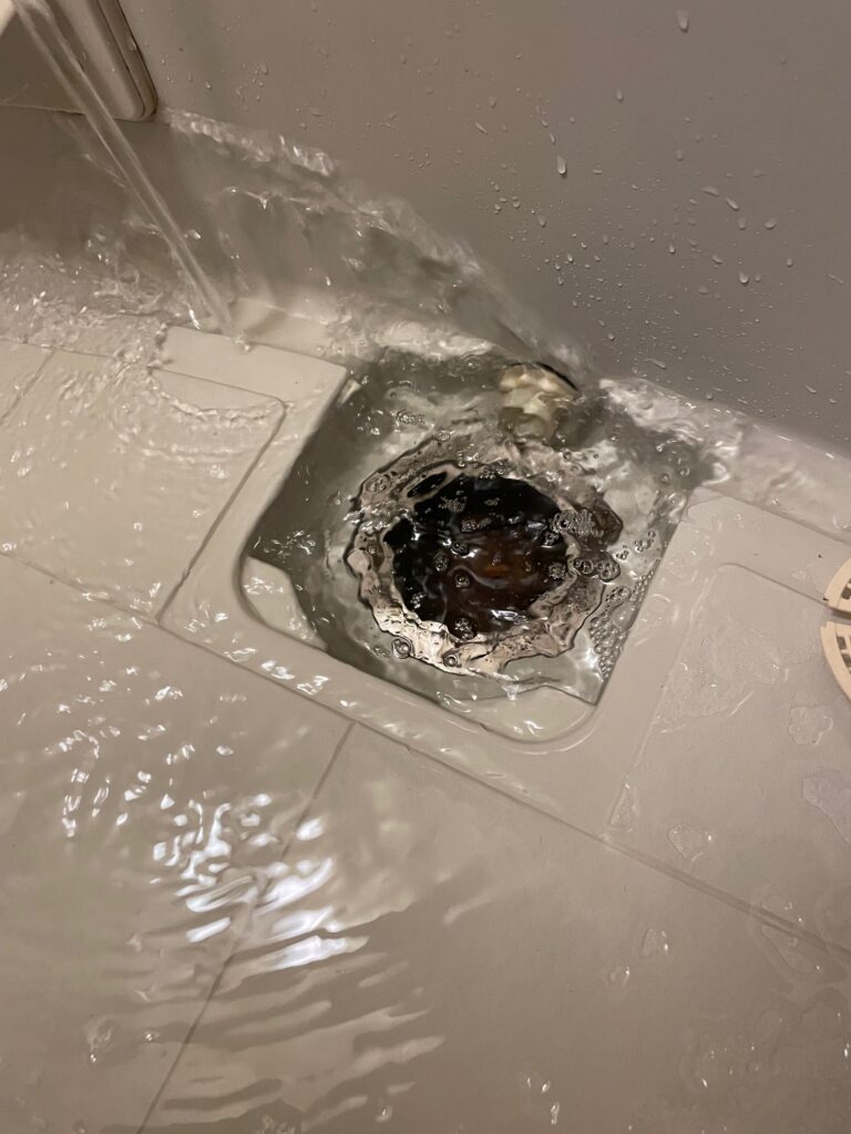 浴室使用時、排水溝が詰まっているのか水が流れていきません。