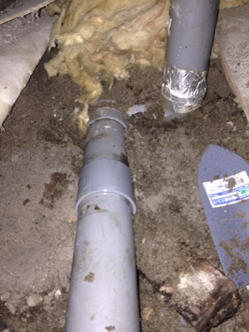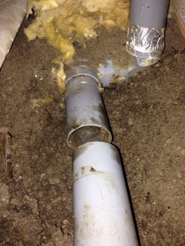 床下にもぐって調査してみると、排水管が完全に離れてしまっていて、そこから水が漏れだしていました。