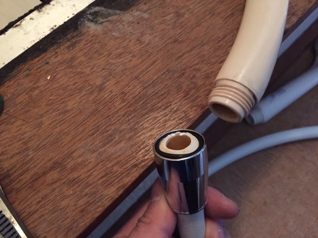 原因は、ホースとヘッドを接続する変換アダプタに原因がありました。