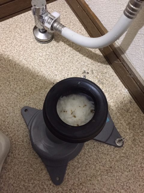 お米やその他残飯を取り除き、再度トイレを接続し直して作業は完了です。