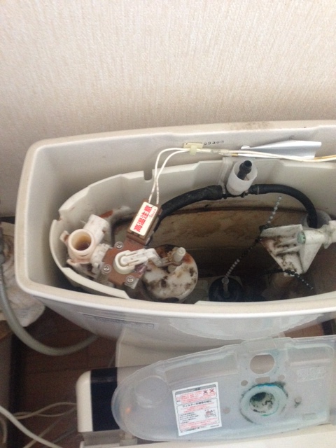 いろいろ調べると、給水管に水は流れているので、トイレ本体を調べてみることにしました。
