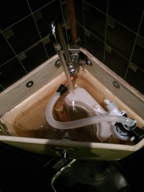 本日は、以前に弊社をご利用頂いた、お客様からのリピート入電。今回は、隅付トイレタンクの水の止まりが悪いとの事。早速訪問し現状を確認してみると、確かに水がしっかり止まらなく流れている状態でした。タンクの部品が悪い状態の為止水が出来なかった為ですので、お客様に毎度の事、料金の確認と内容をお伝えし了承後、ボールタップの交換を致しました。交換後確認してみると、ちゃんと止まりますので修理完了です。