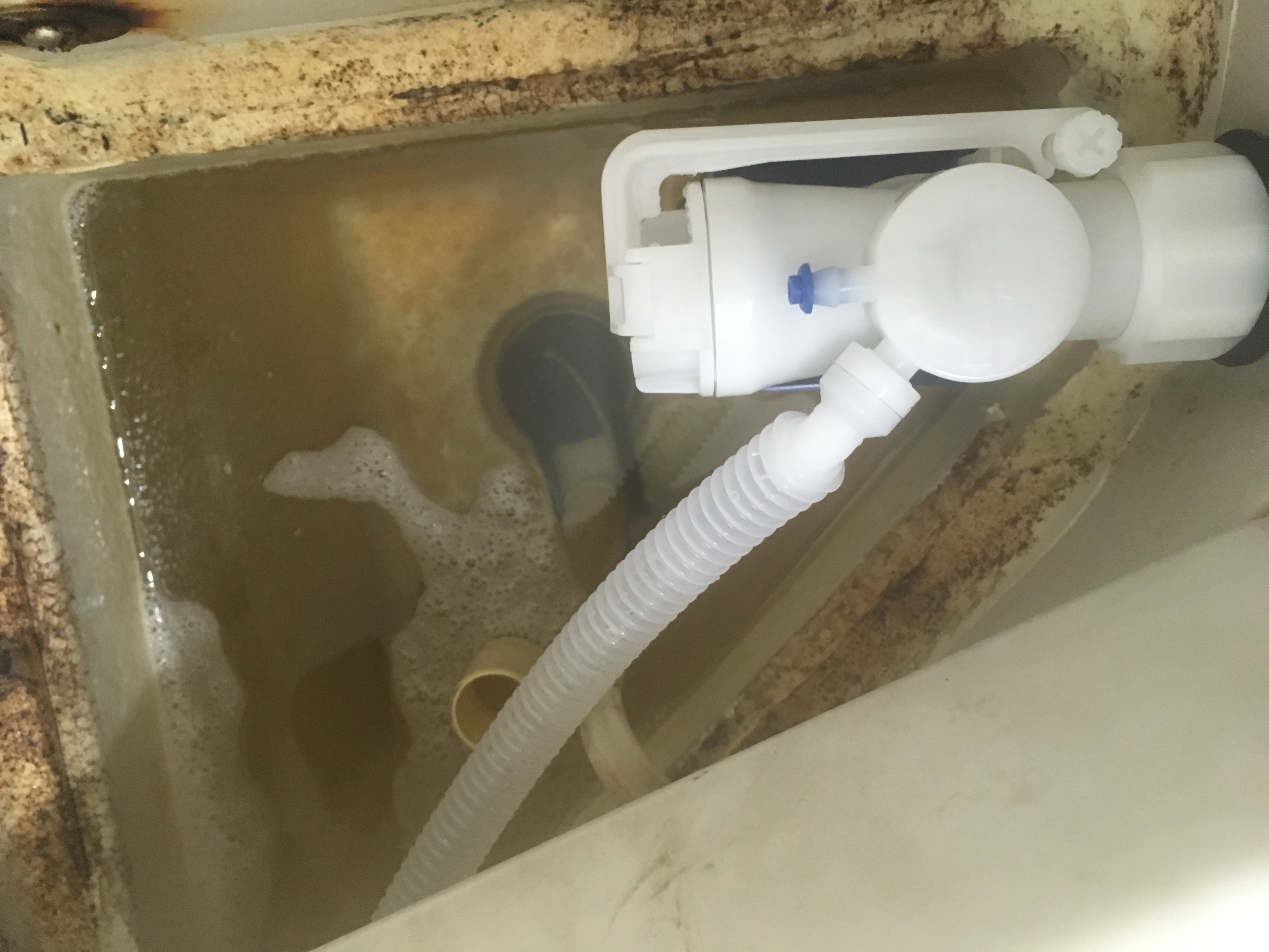 本日はトイレから水が流れる音がするとの事でご依頼頂きました、お伺いさせて頂くとトイレタンク内のボールタップと呼ばれる部品が故障して常に給水されている状態でした、対応としてはボールタップの交換となります、既存のボールタップを外して、マルチボールタップを取り付けして作業完了です。