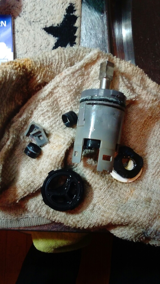 今日は台所の蛇口の水が止まらずレバーが最近、硬いとの依頼で行ってきました。拝見するとなかなかの古い混合栓です。15年使用しているそうです。食器乾燥機にもつなげているので本体交換になるとお金がかかるので何とか安く済ましたいとの事で混合栓本体中のカートリッジ交換をおススメしました。丁度、合うカートリッジを積んでいたため早速交換して改善しました。お客様も蛇口交換になるかと不安だったけどよっかたと喜ばれていました(*^▽^*)