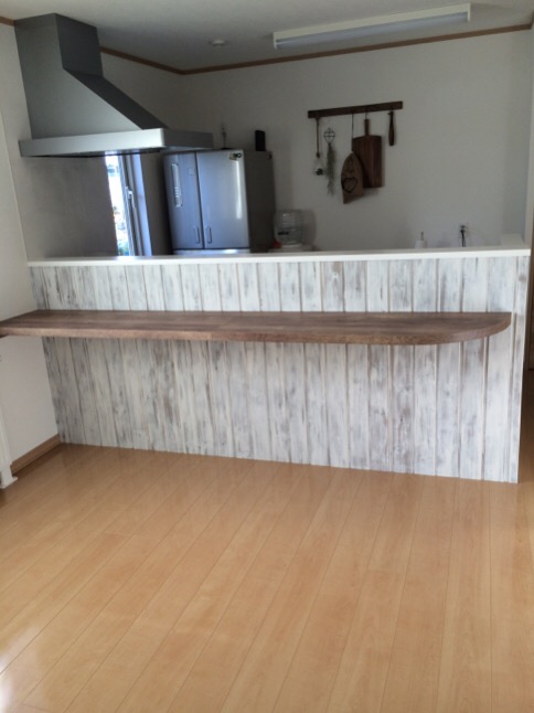 札幌市清田区 対面キッチンの羽目板・テーブル施工