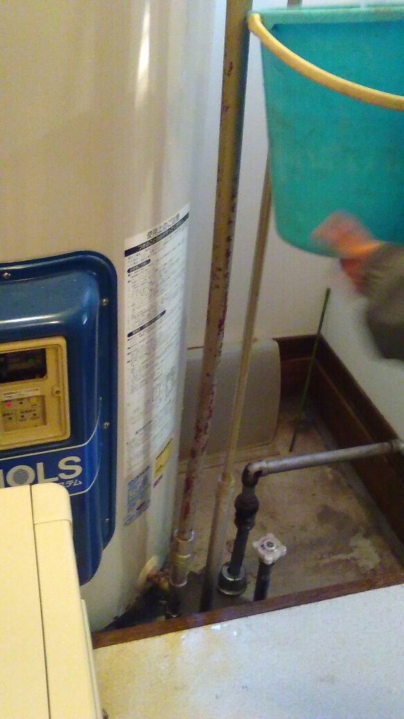 今日は空家になるので温水器の水を抜こうと思ったが抜けないので見てほしいとの依頼で行ってきました。大きさは460ℓ入っていて排水の蛇口を回しても恐らく錆びが詰まって抜けない状態でした。