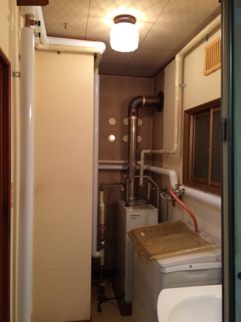 壁の中に埋め込まれている鉄管から、露出をして各水周りに銅管で配管を行いました。
