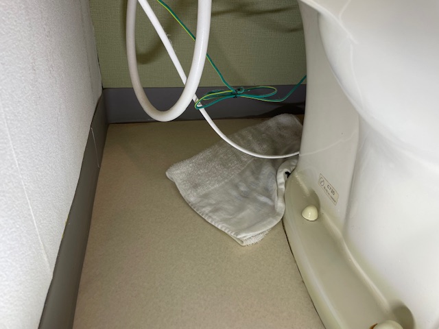 管理会社様より、トイレを流すとタンクの下あたりから水漏れしてくるとのご申告でした。