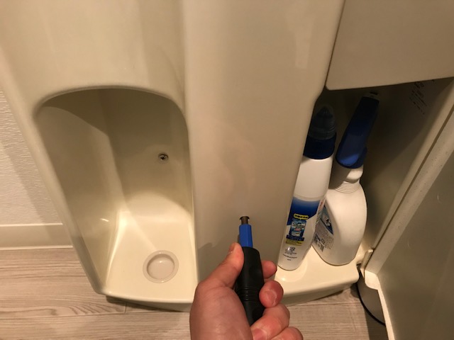 化粧カバーで止水栓は隠れていましたが、便利なことに小さな穴があり、そこからドライバーで調整しました。