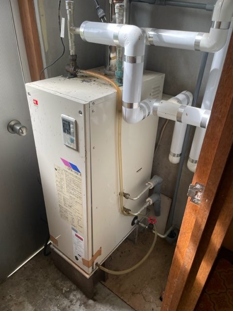 土間に設置されたこのボイラーは、もう20年以上使用されており前々から調子が悪かったとのことでした。