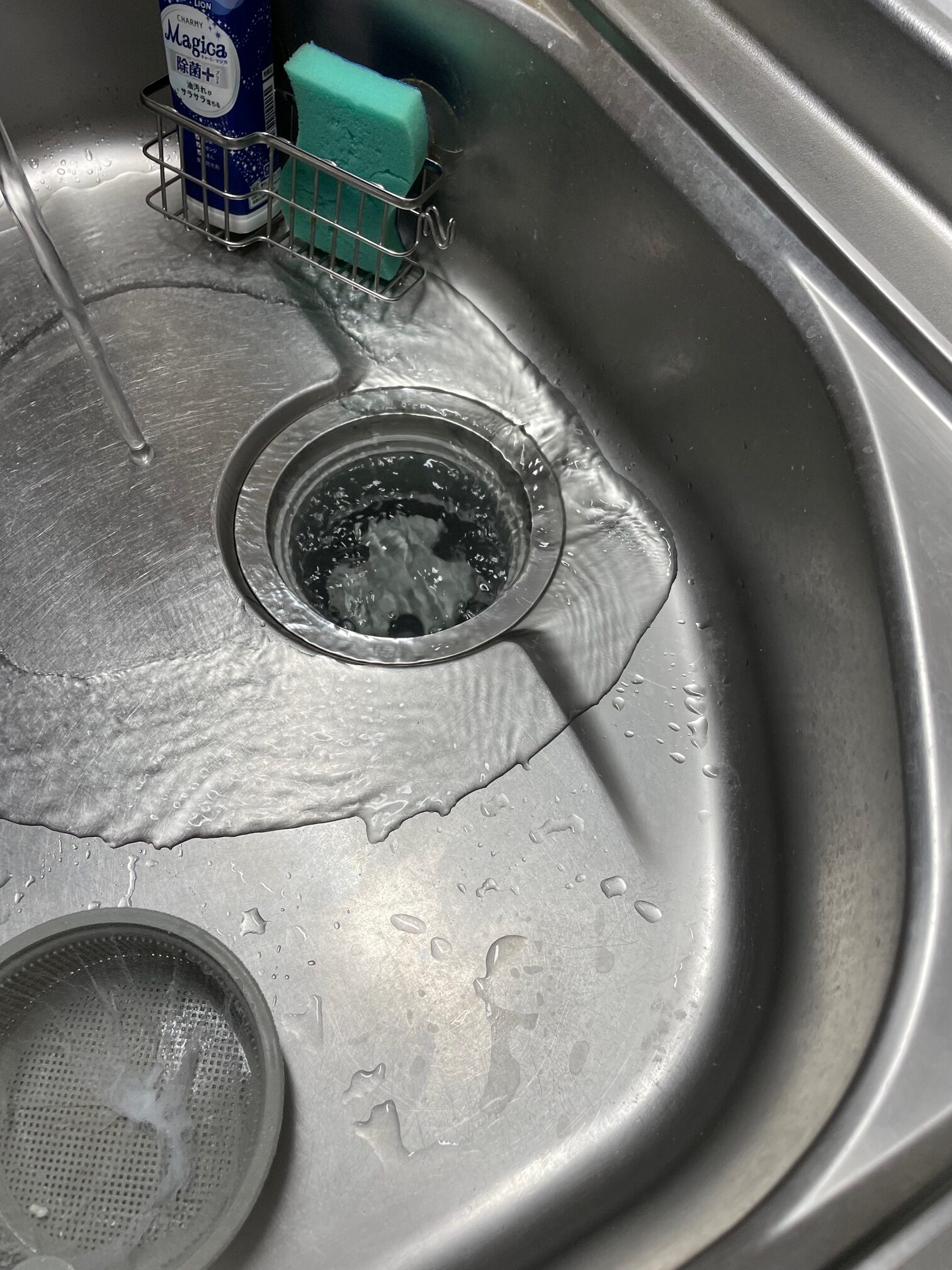 台所の水が流れていかずシンクに水が溜まってしまうとのこと。