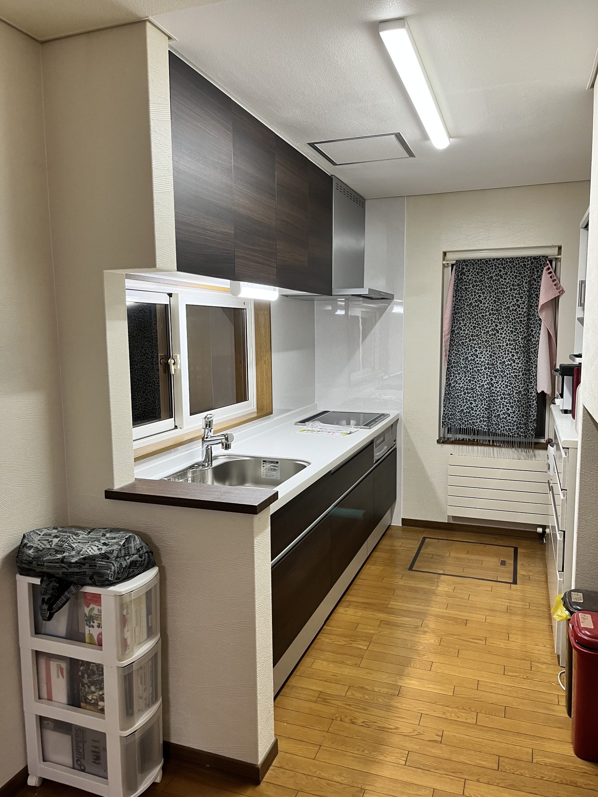 キッチンや吊戸棚、天井の壁紙などを一新する工事を行い、見違えるほど清潔感のある綺麗な空間に変わりました。