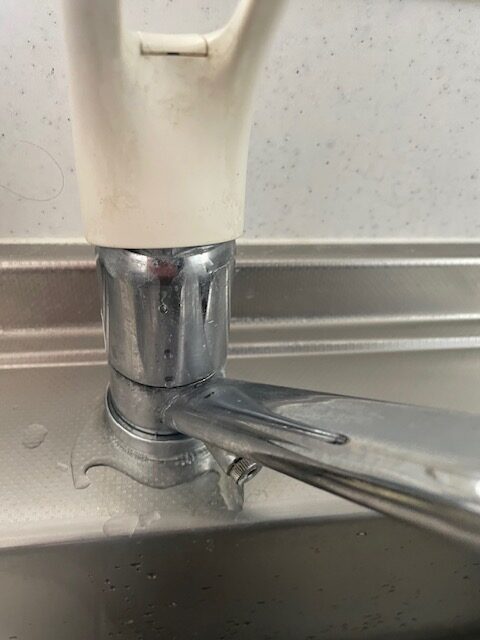 管理会社様より、台所蛇口を使用すると本体から水が染み出てくるとのこと。