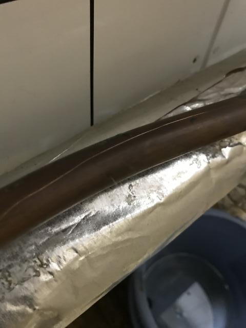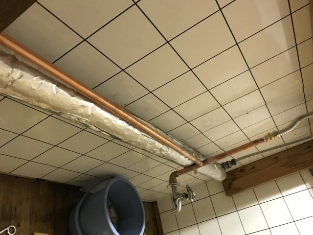 シンクを外して確認してみると配管からピンホールしており銅管補修作業をして改善しました。