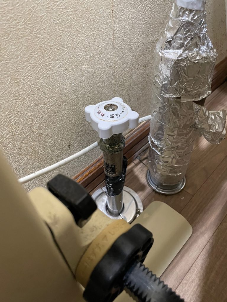 トイレ内の水抜き栓より漏水音が聞こえたため確認したところパッキンが劣化している状態でした。
