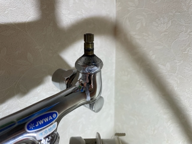 洗濯水栓の水側のハンドル下から、使用したときのみ数滴だけ水が漏れてくるとのご申告でした。