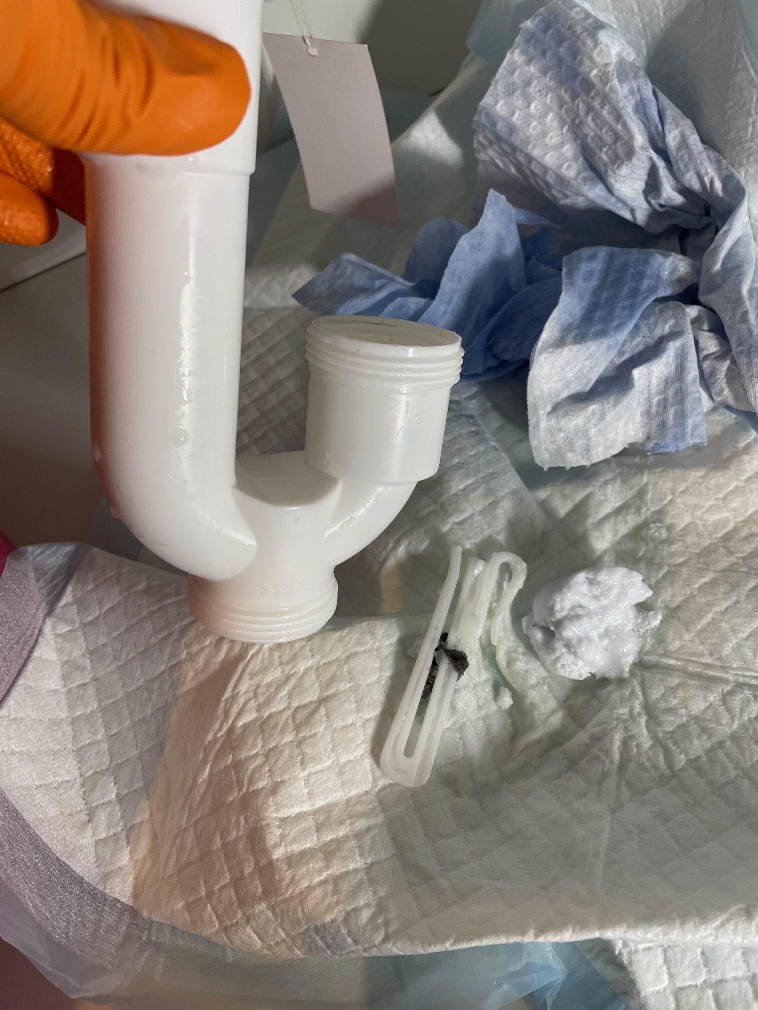 排水口にカーテンフックを流してしまい、詰まってしまったとのことです。