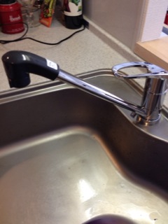 お伺いしてみると、蛇口のヘッドがホースで伸びるタイプのものが付いていました。