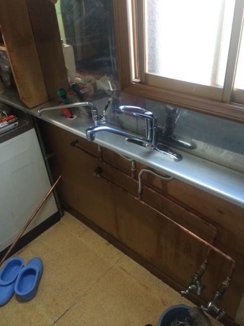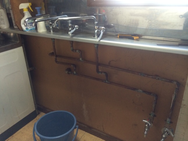 ピンホールした管は全体的に取り替えが必要で、キッチンの裏側の銅管を一式引き直しとなりました。