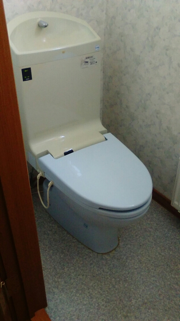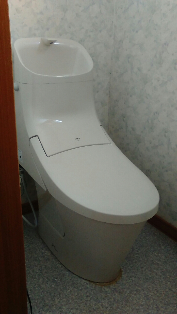 今日は以前、トイレ詰まりで呼ばれた、お客様から今度はトイレが水で濡れているので見てほしいとの依頼で行ってきました。拝見するとトイレのウォッシュレットから水が漏れています。ここのトイレは便器とウォッシュレットが一体化のタイプでウォッシュレットのみの交換は出来ないのでトイレ自体の交換になります。もう23年使用してるし、詰まりやすくなってきているのでそろそろ替え時かなと、お客様。INAXの最新モデルのカッコイイ、トイレになって喜ばれていました(*^▽^*)