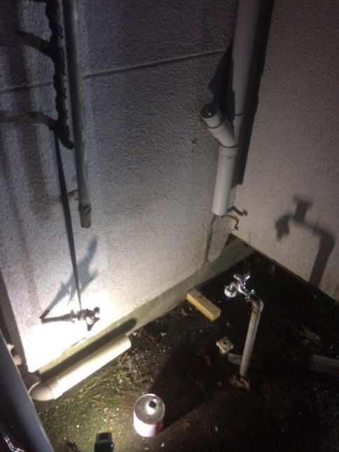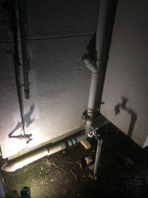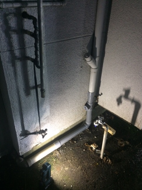 本日は、夜に2階からの排水管が割れていて外れ2階の台所の排水が漏れているので対応してほしいとの依頼。早速訪問し確認すると確かに割れていて排水管が外れています。古いお宅で昔、増築工事を自分でやったようで2階の台所の排水を外壁を這わしてつなげているような家でした。早速、割れているので交換しかなく急いで交換準備をしに部材を会社まで取りに行き作業をさせて頂きました。無事、寒い中終わりました。お客様も大喜びでした。(^^♪