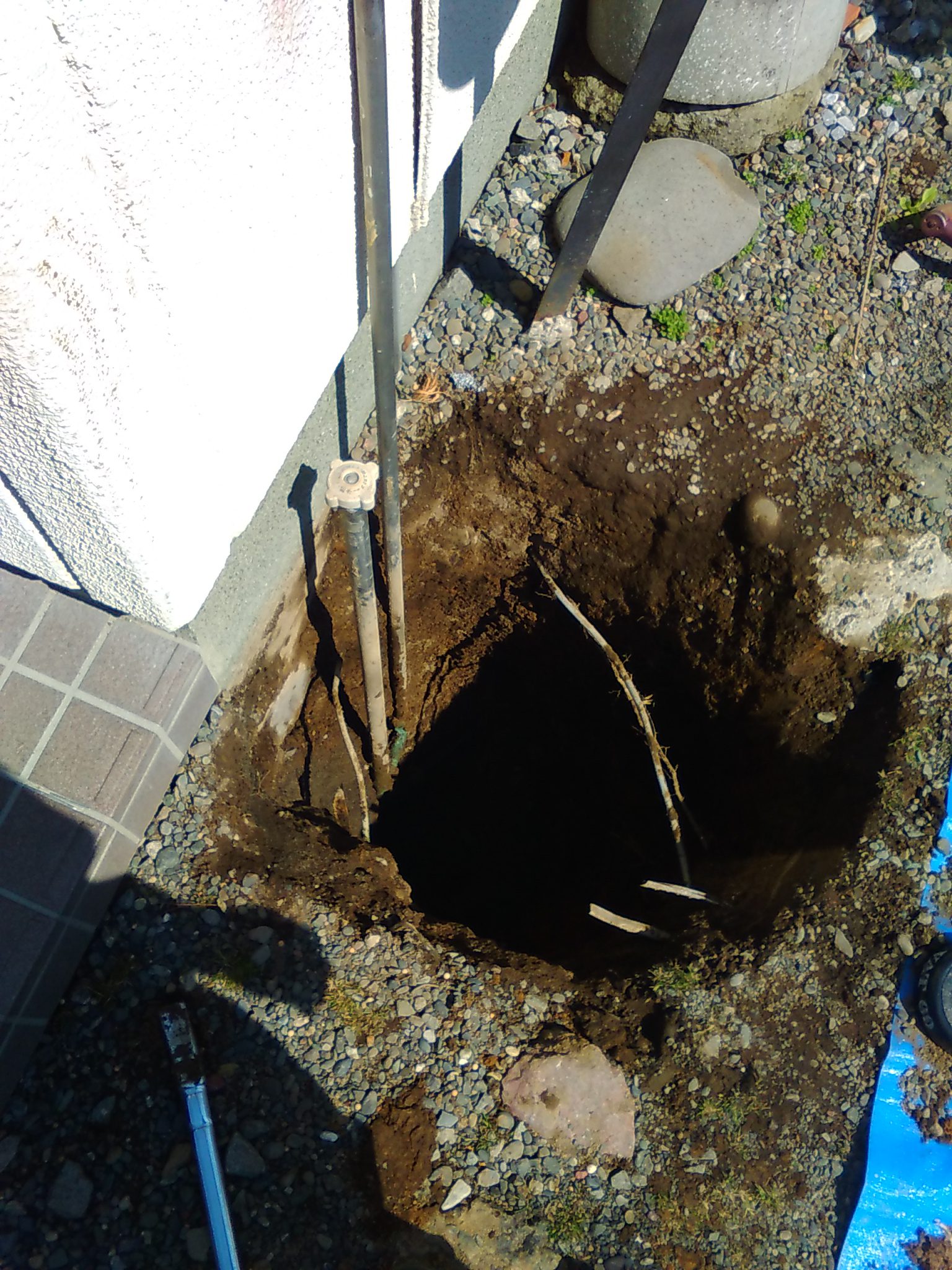本日は、散水栓の交換工事を行いました。以前に散水栓の漏水があり古いので交換希望のあったお客様でしたが、最近天気が悪くて中々交換工事が出来なかったので、天気の良い本日に合わせて工事を行いました。あまり深くまで埋まっていない散水栓だったので掘るのは比較的楽でした。地域によっては大人一人がすっぽり入るくらい掘りますので(T_T)新しい散水栓の蛇口はホースリールのアダプターがワンタッチで取付出来るタイプにしましたのでお客様も便利になったと大変喜んでいただきました。