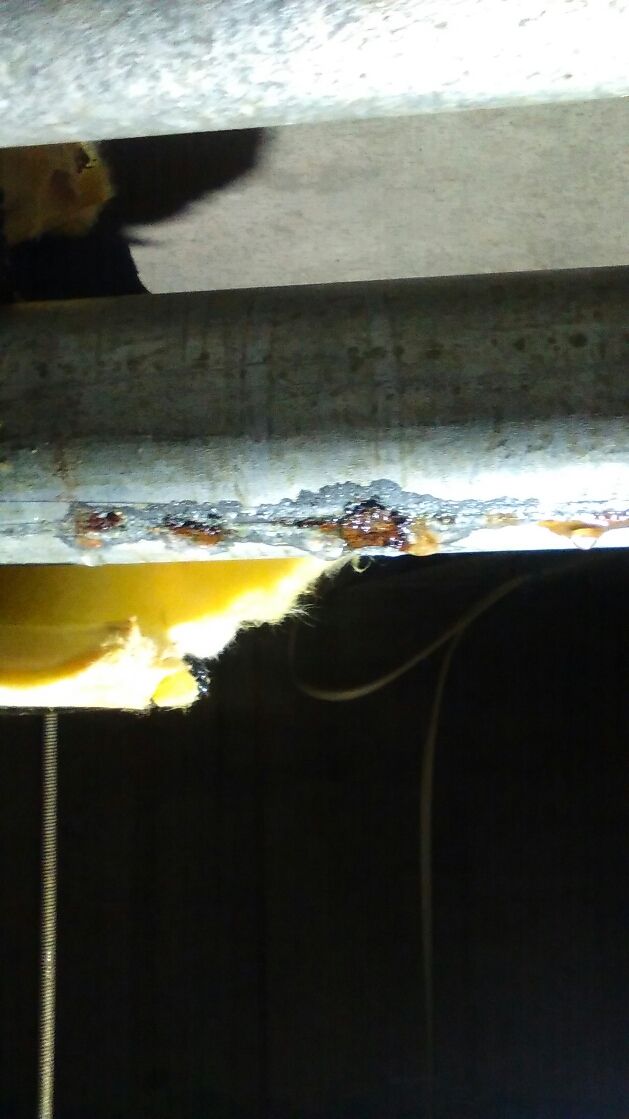 年のマンションで1Fをテナントとして使っているとの事です。幸い店の天井でなく事務所でしたので良かったです。早速、点検口を覗いてみると鉄管が