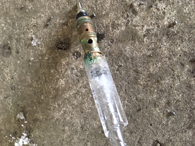 本日は提携している管理会社様よりご連絡があり、入居者様から水抜き栓のハンドルが回らないとの事でご依頼頂きました。お伺いさせて頂くと確かに固くてビクともしない状態でした。水抜き栓を点検の為一度分解してみると地下の部品周辺が凍結している状態でした。ここまで凍っていると動かないですね、通常水が行かない場所で凍っていたので水抜き栓のパッキン部から漏水して漏水した水が全て凍ったと思われます。凍結部を溶かして漏水原因のパッキンを交換して作業完了です。