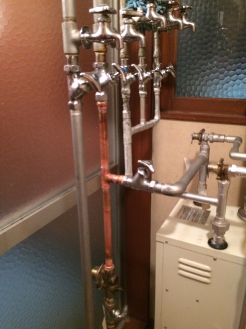 本日は、ボイラー付近の水道管から水漏れしてるので見てほしいとの依頼でした。早速、訪問し確認してみると結構古い水道管で継手部から水漏れしている状況でした。結構前からのようで、だましだまし使用していたら今日から本格的に水漏れの量が多くなり急遽、弊社に修理依頼を頂いた感じでした。古い鉄管でしたので継手部も錆で腐っていましたので、その上部から一部水道管の交換作業をさせて頂きました!(^^)!無事、交換も終わりお客様も大変お喜びでした(^^)/