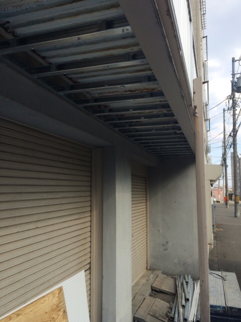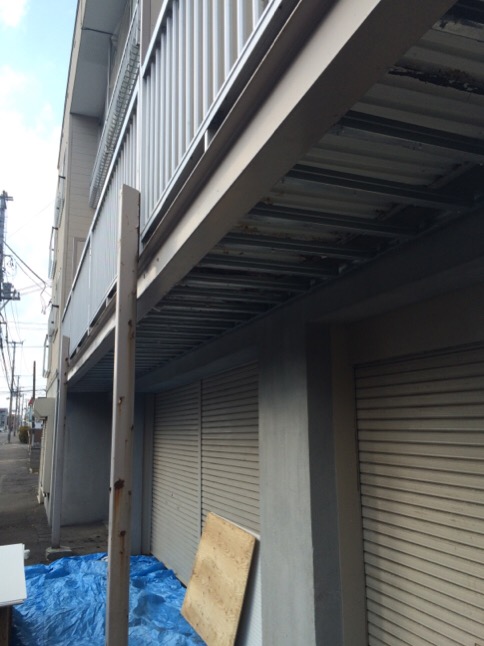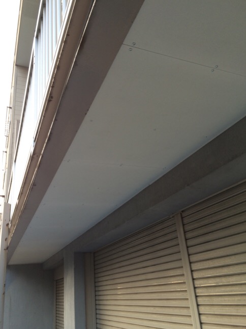 本日は、お得意様の、アパートの大家さまから、以前から頼まれていた、アパートガレージ前の軒天の交換工事を致しました。