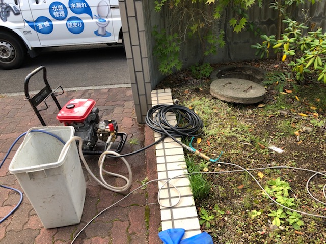 高圧洗浄機を使用して排水内に溜まった汚物等を除去していき、症状は改善されました。