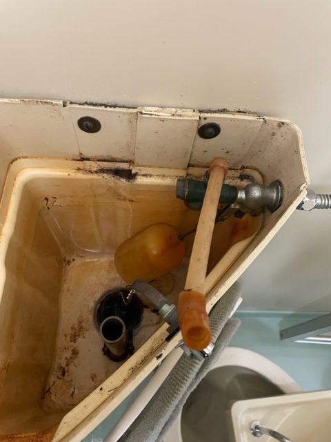 タンク内を調査すると、水を開閉する部品が劣化していたのと、タンクにフタをするゴムフロートが劣化していました。