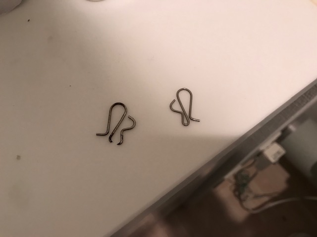 応急処置でついていたハリガネのようなものを外し、新しいフックを取り付けなおして症状は改善しました。