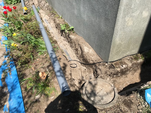 次に、しっかり勾配をつけるように新しい排水管や桝を設置し、水を流して流れが良好かどうかをテストしました。