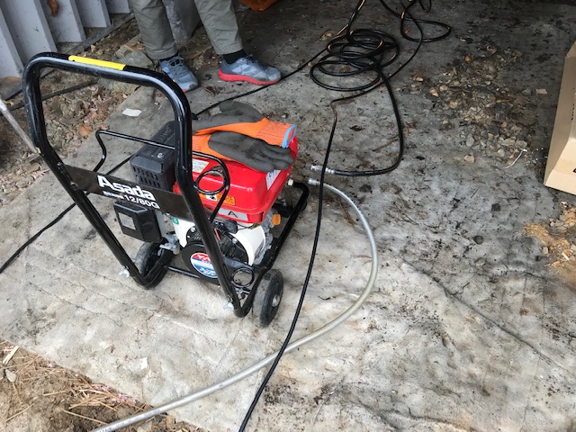 ある程度取り除いたら、高圧洗浄を使用して詰まっていた汚物や残った石ころを排除していきました。