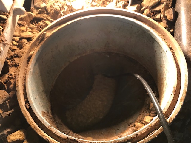 土砂を取り除いていけばいくほど詰まっていた汚水が徐々に流れ出てくるのがわかりました。