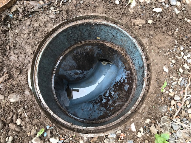 こういう流れ方の場合はトイレ本体じゃないと予想し、外にある排水桝を調査することにしました。