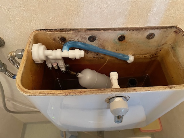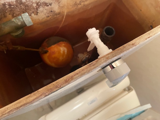 配管のサビがボールタップで詰まって固着してしまっているため、新しいボールタップに交換しました。